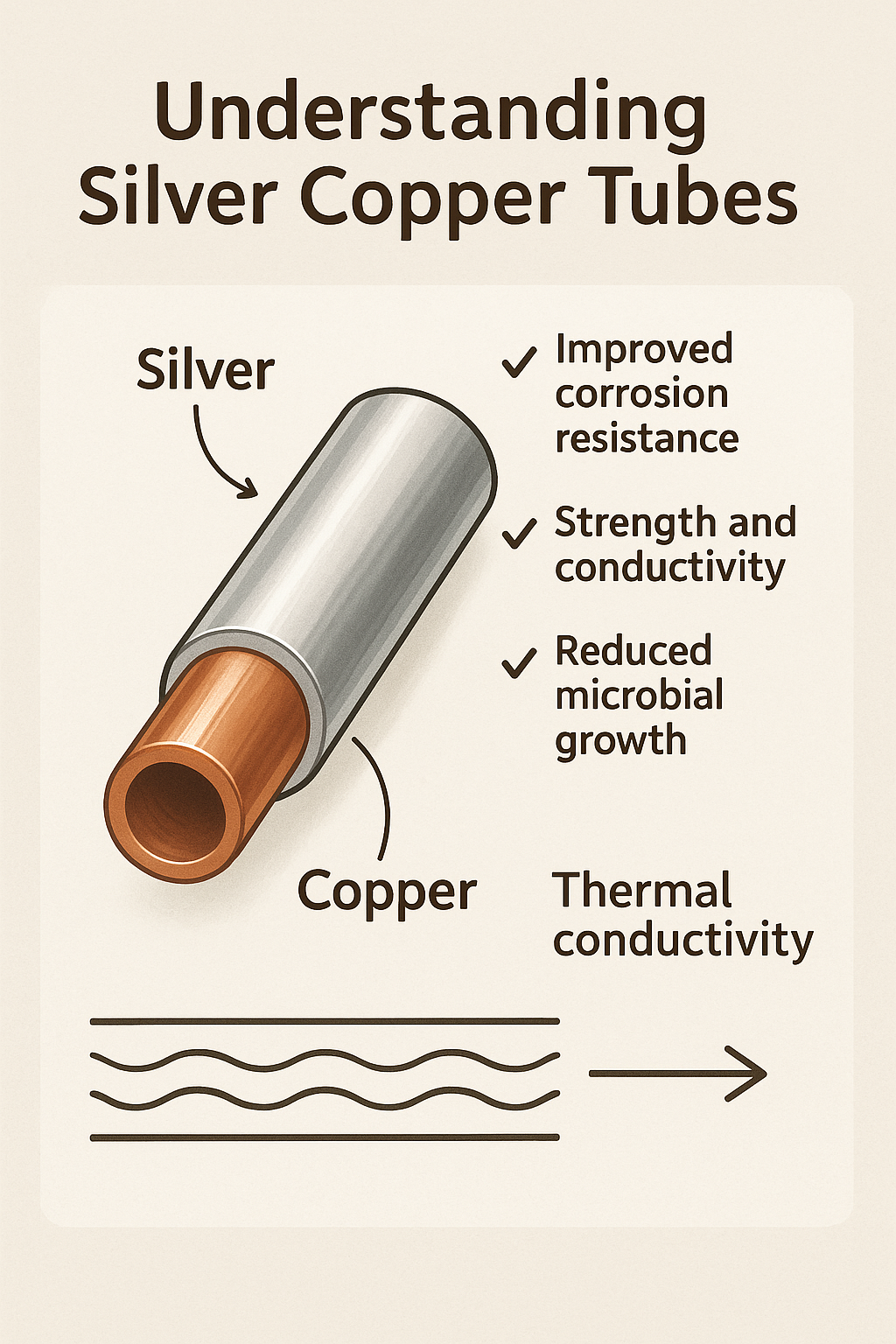 Silver kopparrör är vanligtvis kopparrör förstärkta med en liten andel av silver , antingen genom legering eller ytbehandling. Detta tillägg förbättrar flera inneboende egenskaper hos koppar utan att kompromissa med dess välkända fördelar. Koppar har länge värderats inom konstruktion för sin utmärkta värmeledningsförmåga , formbarhet , och resistance to many forms of corrosion. The inclusion of silver further enhances these characteristics, particularly in environments where fukt , kemikalier , eller temperaturfluktuationer kan påskynda materialnedbrytning.