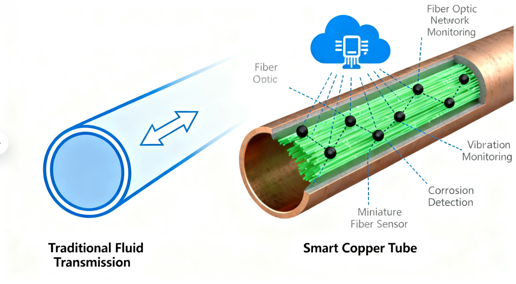 (Bildtext: Från passivt rör till aktiv sensor: Den grundläggande utvecklingen av kopparrörets roll, från en ren ledare av ämnen till en generator och sändare av operationell intelligens.)