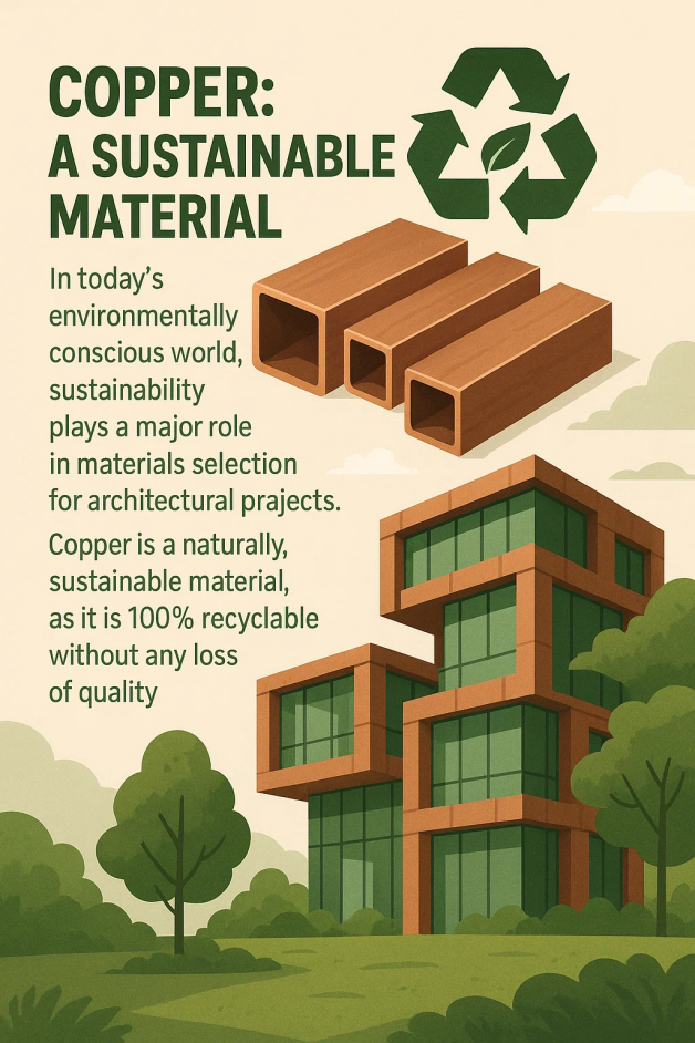 I dagens miljömedvetna värld spelar hållbarhet en stor roll i materialval för arkitektoniska projekt. Koppar, tillhandahållen av betrodda Kopparrörstillverkare , är ett naturligt hållbart material, eftersom det är 100 % återvinningsbart utan någon kvalitetsförlust. Faktum är att kopparåtervinning har varit en praxis i tusentals år, vilket har bidragit till dess miljövänliga rykte.
