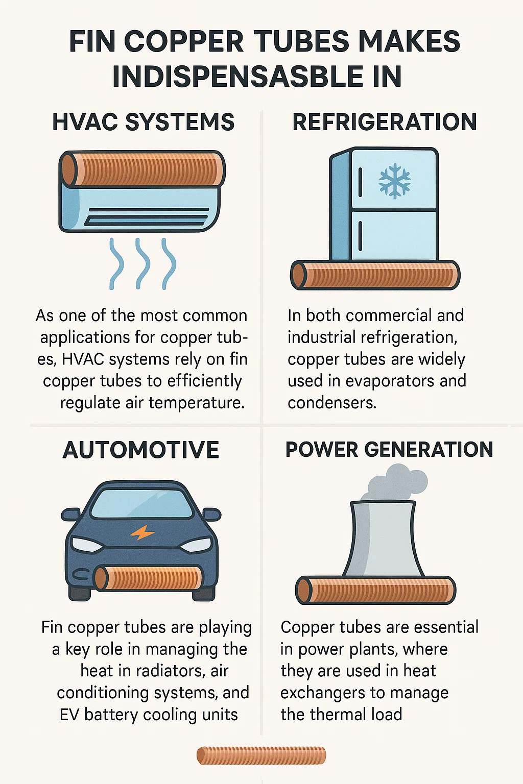 Mångsidigheten hos fena kopparrör gör dem oumbärliga i många branscher, såsom: