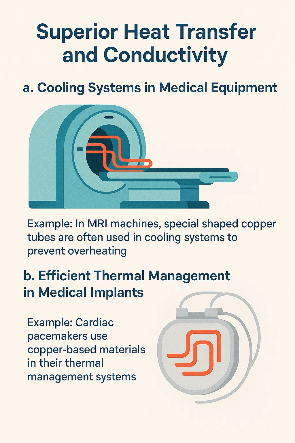 Koppar är känt för sin överlägsen värmeledningsförmåga , vilket gör det till ett idealiskt material för applikationer som kräver värmeväxling . Speciellt formade kopparrör utnyttja denna egenskap i olika medicinska apparater, särskilt inom kylsystem or värmeväxlingrs .